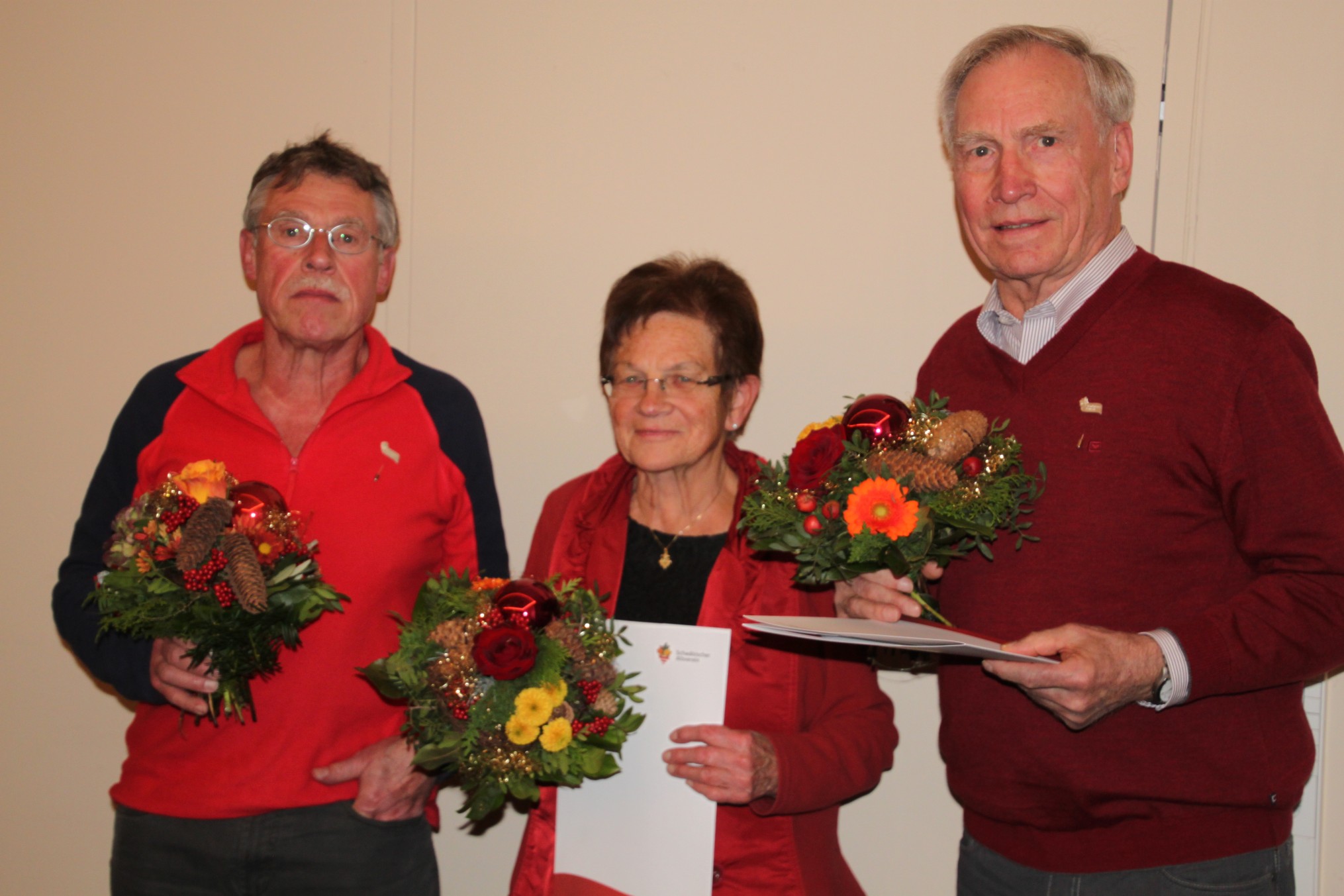 Als Überraschung für die Geehrten gestaltete sich die folgende Ehrung eines Vorstands- und von zwei Ausschussmitgliedern mit der „Silbernen Ehrennadel des Schwäbischen Albvereins“. Zu jedem der drei, mit der Ehrennadel Ausgezeichneten, gab es eine kurze Laudatio, die mit Übergabe der Ehrenurkunde, eines Blumenstraußes und dem Anstecken der Nadel abgerundet wurde.