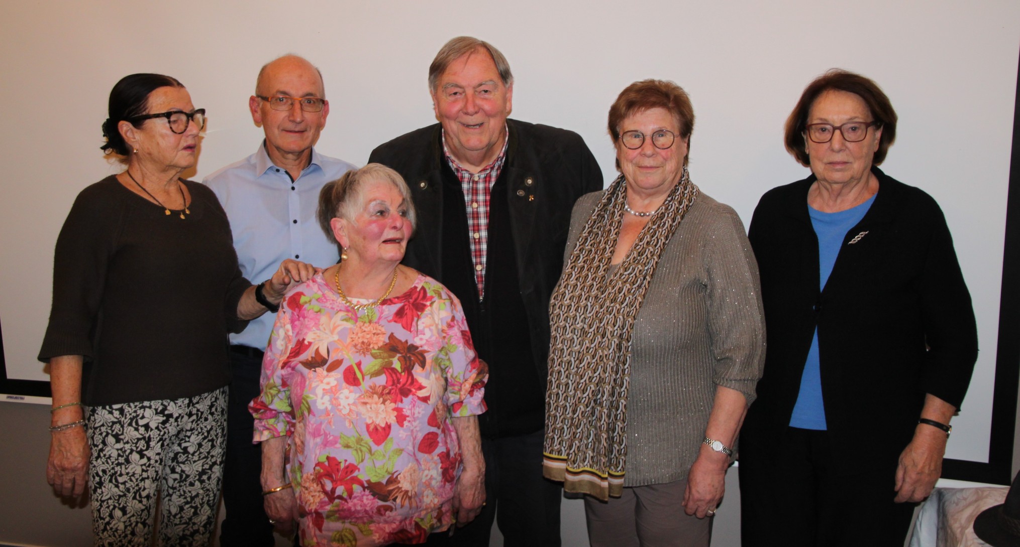 Jubilar-Ehrung: v. l. n. r.: Erika Sommer-Hils, Eckart Schweizer, Brigitte Ensslin, Gerhard Schwenninger, Rosika Munz, Waltraud Munro-Löffelhardt
