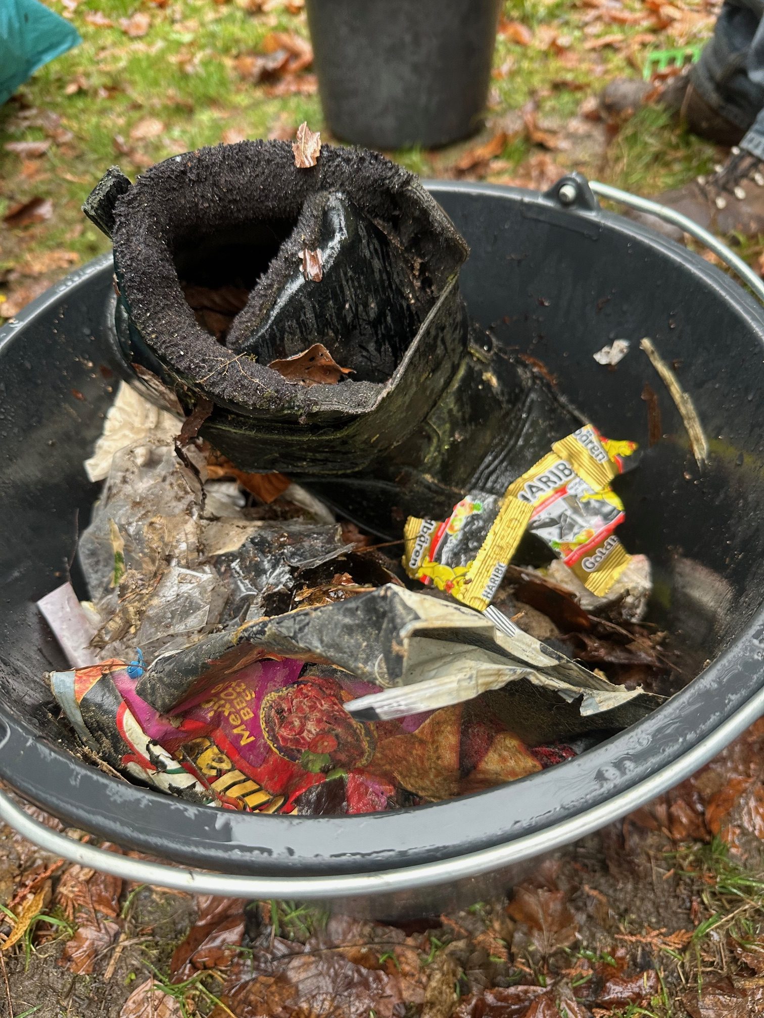 Es kamen zwei Säcke voll Müll zusammen: Unter anderem eine Unterhose und ein paar Schuhe, falls die jemand vermisst bitte beim Albverein melden 😉